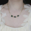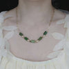 Immerse yourself in the mystical allure of our Elf Forest Statement Necklace. Crafted with 8mm round natural malachite beads and adorned with gold-plated bamboo-shaped beads. Set on a 14K gold-plated brass paper clip chain, it features a delicate butterfly clasp. A harmonious blend of nature and elegance.